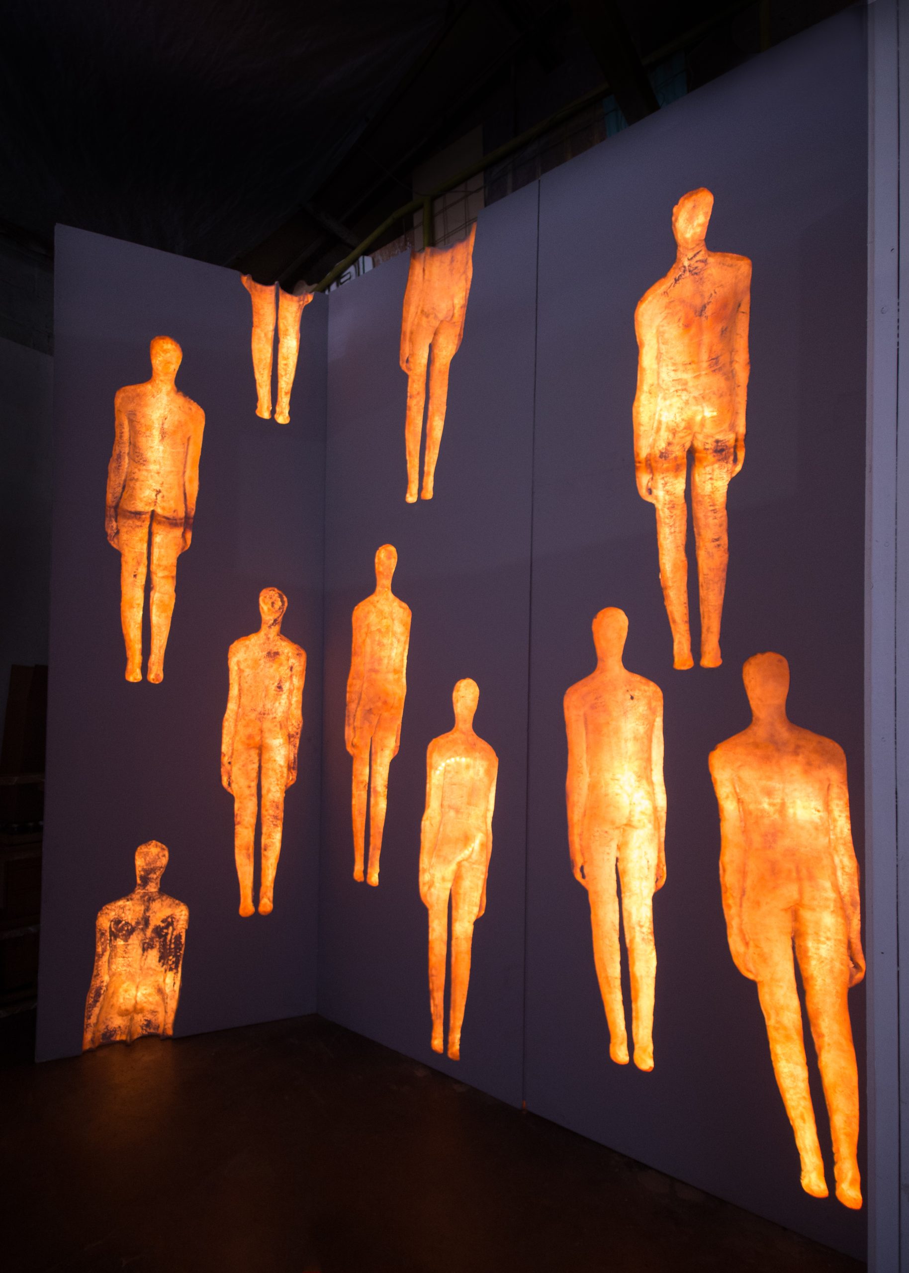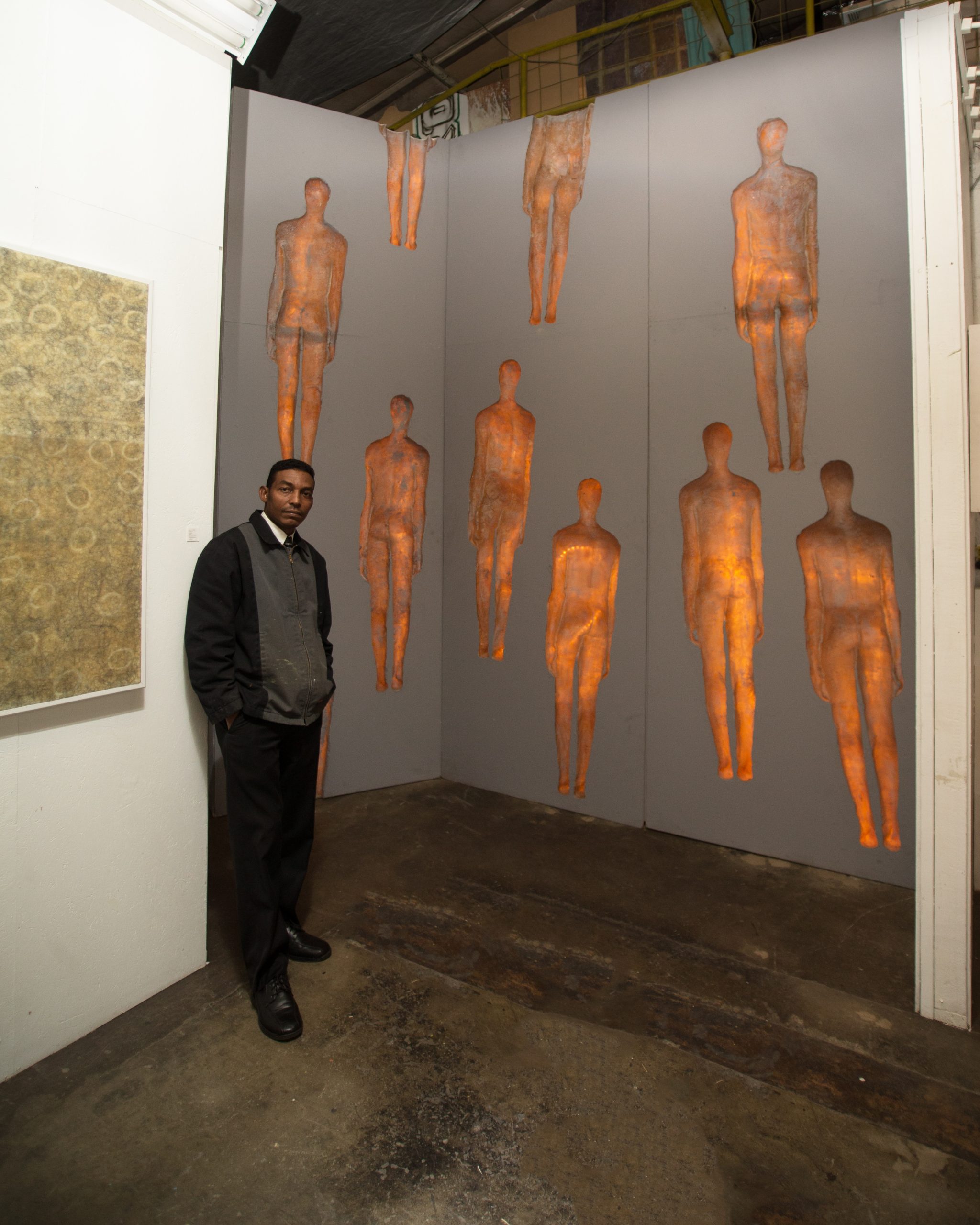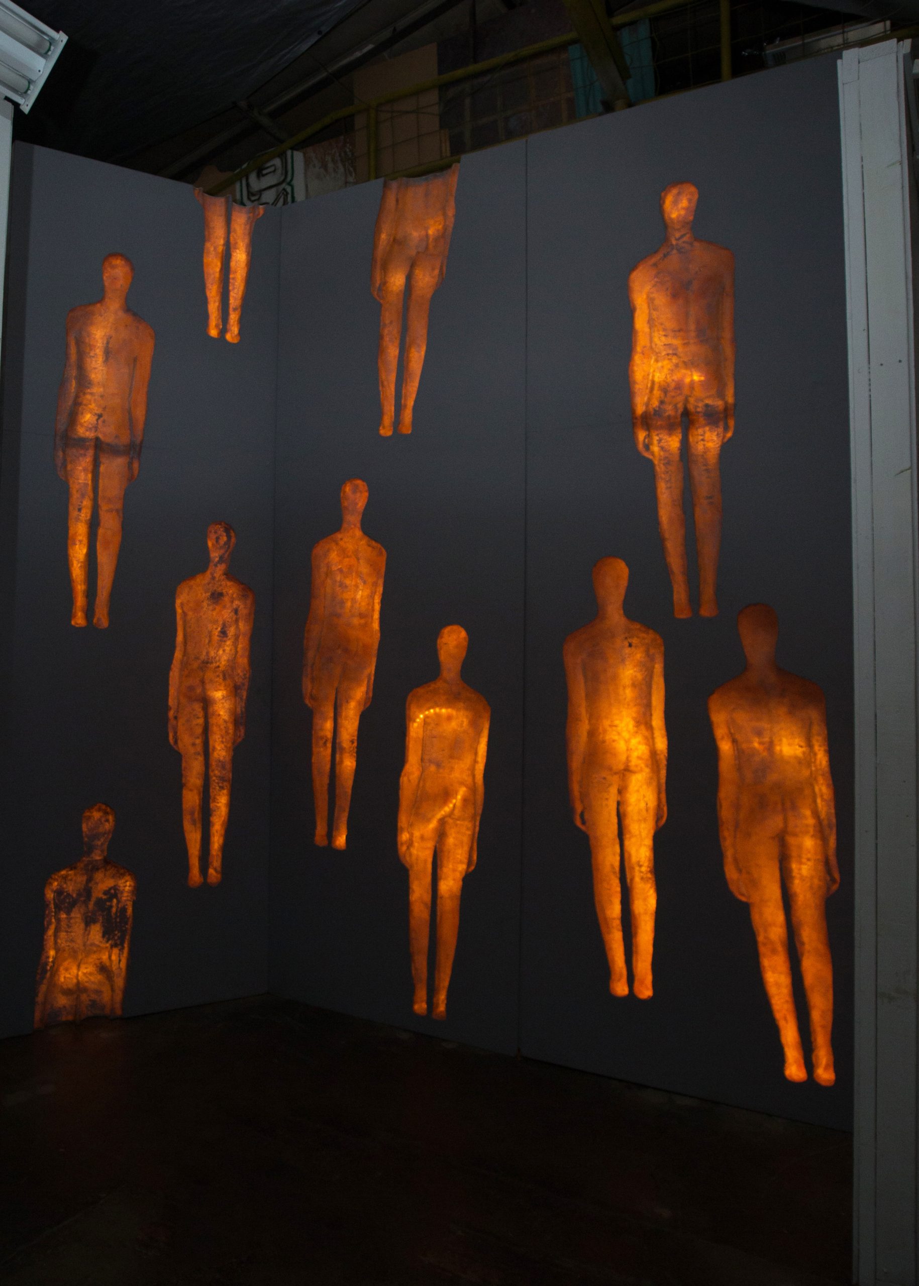 Ungrounded is a profound exploration of identity and displacement through the medium of fiberglass sculptures. The decision to sculpt only the back side of life-size figures and use backlighting to complete their silhouettes powerfully captures the emotional and psychological state of immigrants. This artistic approach effectively conveys the